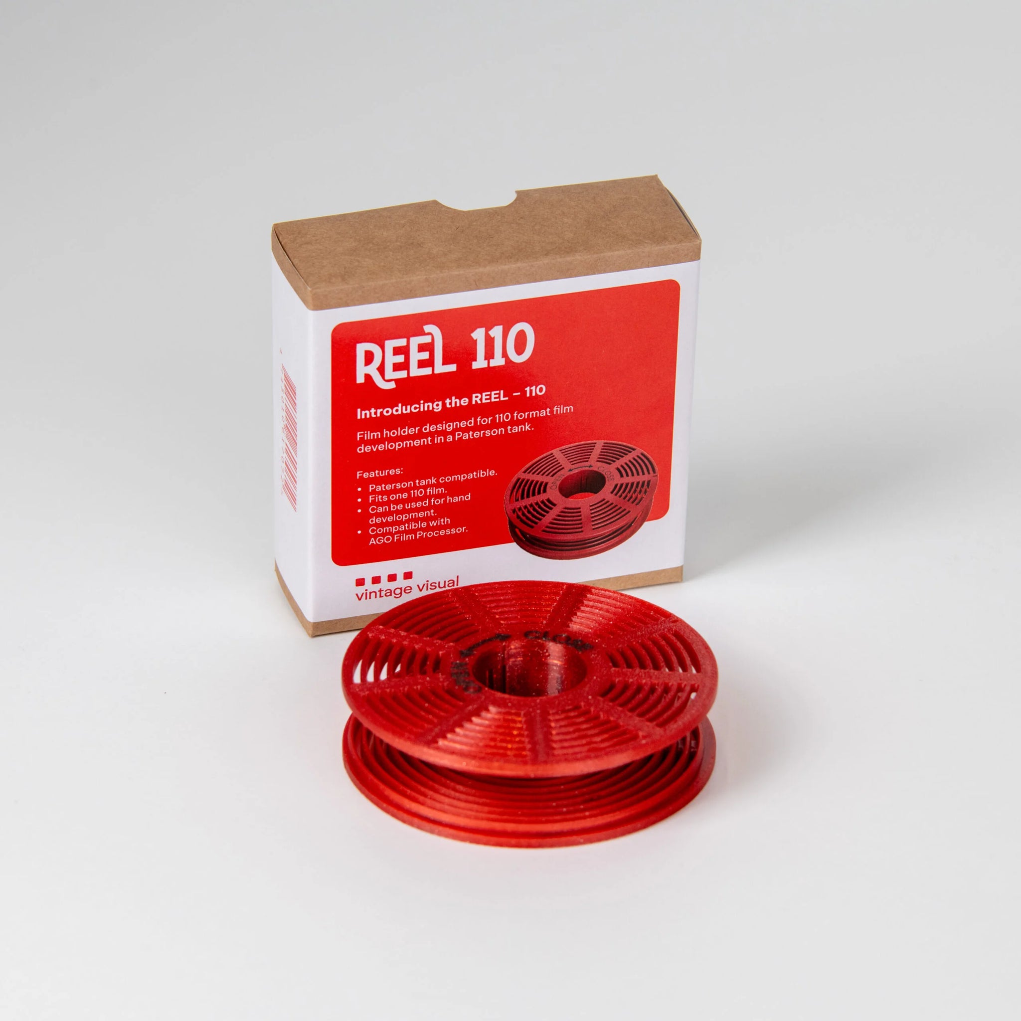 The REEL – 110 is a developing reel for 110 format film, designed for use in Paterson tanks and optimized for the AGO Film Processor.