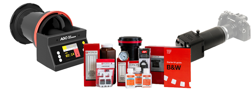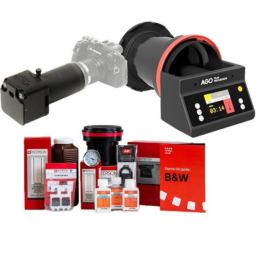 Complete Kit: AGO + Easy35 + Starter Kit is a full-featured home lab for 35mm black and white film—built for those who want full control of their workflow from start to finish. Whether you’re new to developing or looking to streamline your process, this bundle gives you the tools, chemistry, and support to do it all from your own space—no darkroom required.